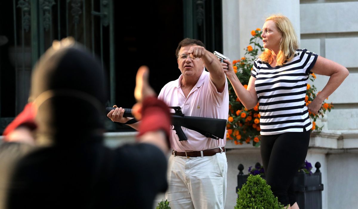 The McCloskeys became social-media celebrities when they greeted Black Lives Matter protesters who had broken into their private community with a semi-automatic weapon and pistol. The demonstrators, some of whom were reportedly armed themselves, had threatened the couple and their dog. Clips and photos went viral.