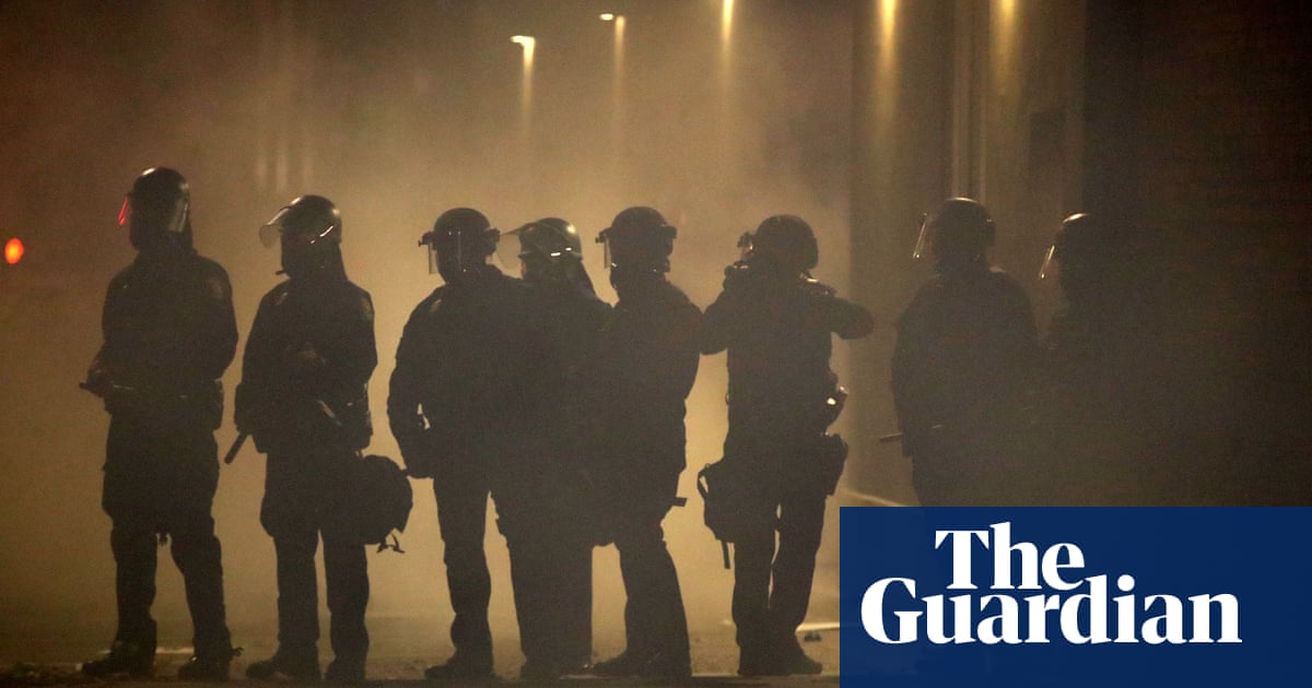 Police officers stand in a fog of teargas in Oakland, California, on Friday night during a protest sparked by the death of George Floyd while in police custody.
