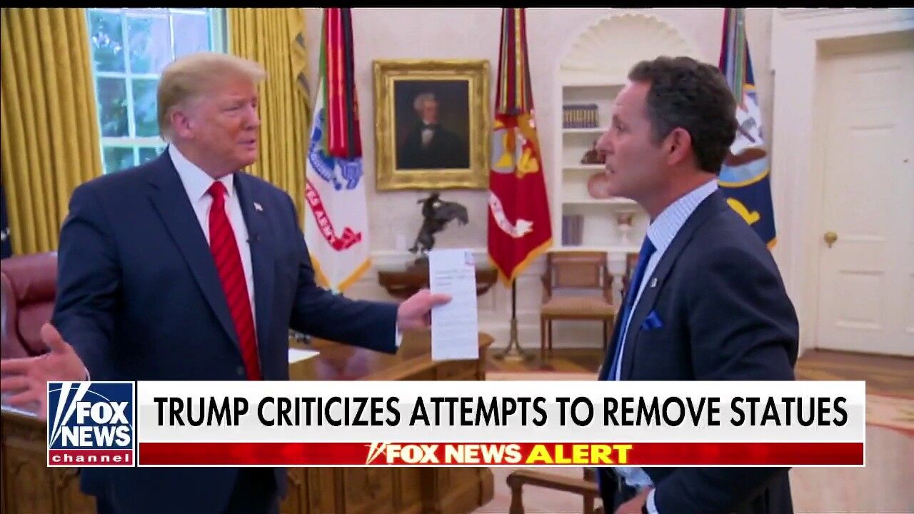 A clip of that interview aired on “Fox & Friends” on Tuesday. Before the clip aired, Kilmeade noted that more than 100 monuments and plaques have been taken down since May 25.