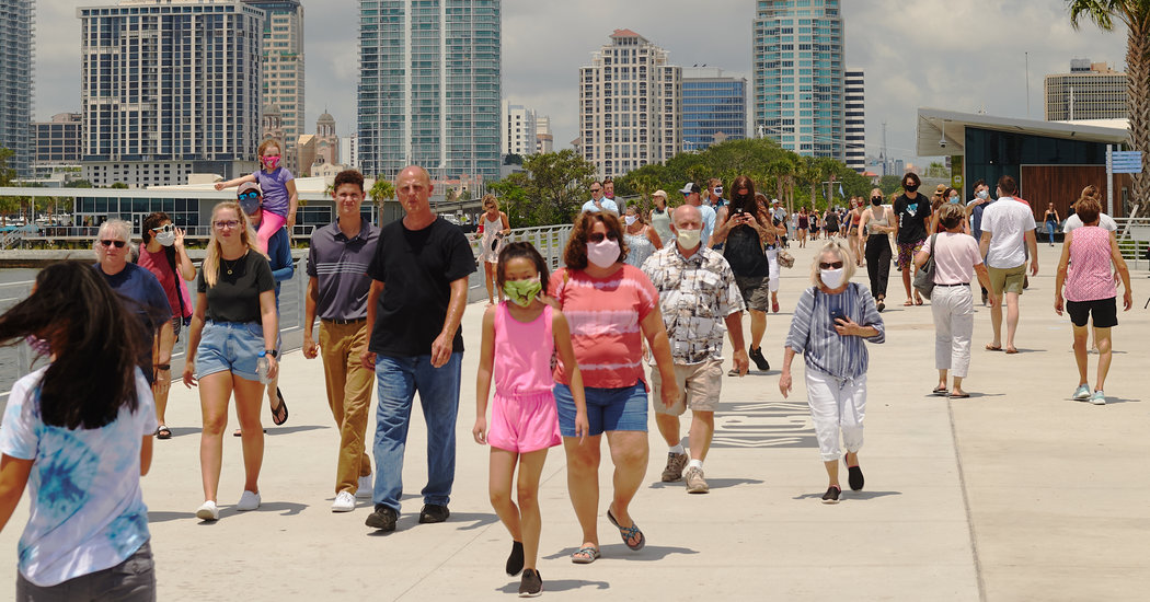 The surge in Florida reflects how the spread of the virus has escalated in much of the country, particularly in Southern states where governors following President Trump’s lead had pushed aggressively to ease restrictions and encourage businesses to reopen. Now some states are trying to add mask mandates and other protective measures, and seeing renewed tensions between governors and mayors as they disagree over how much to pull back on the reopening.